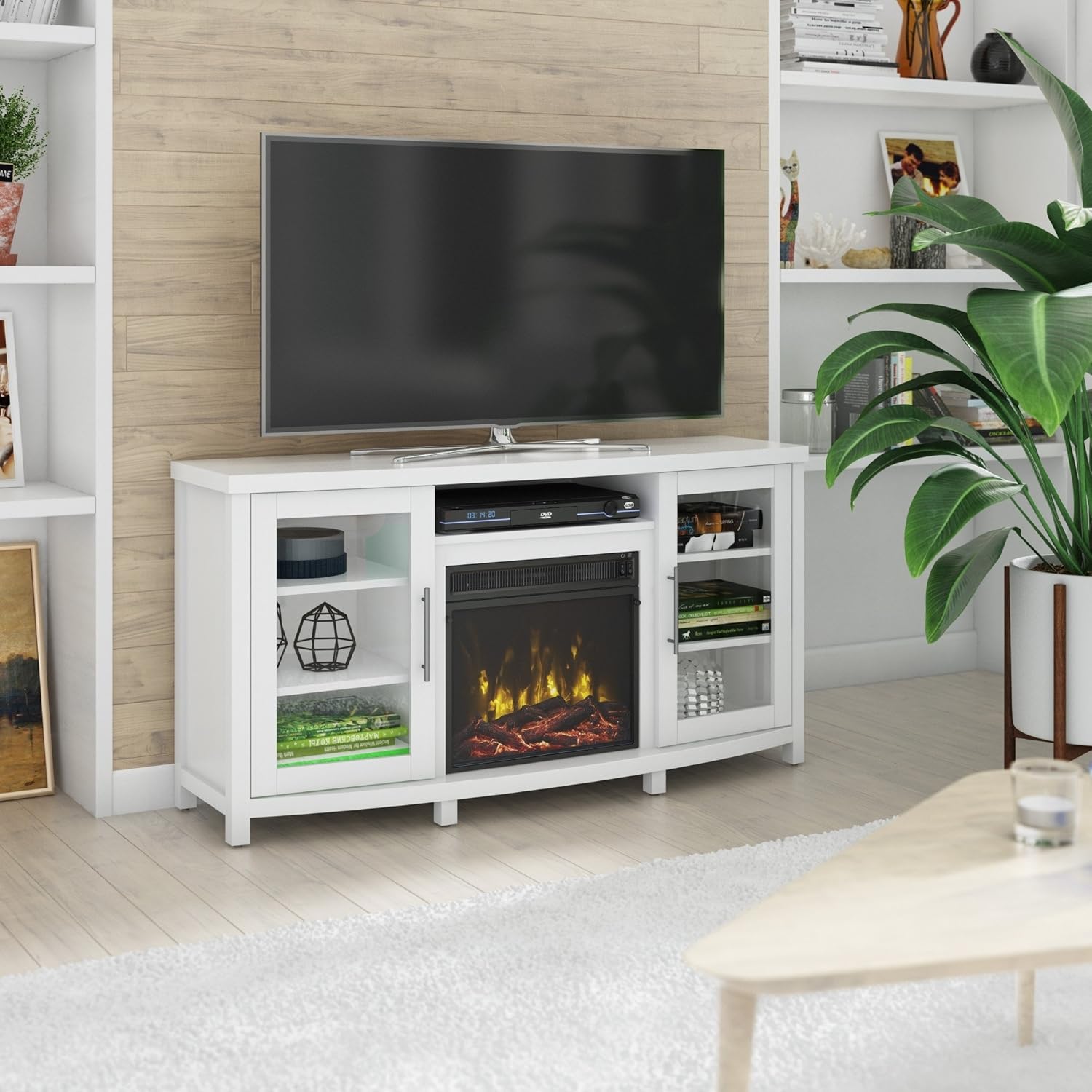 When shopping for electric fireplace tv stands there is quite a bit to consider before making the right purchase. Many tv stands are meant to support a load commensurate with a large tv and to avoid overheating. This electric fireplace tv stand comes up with double storage cubbies. A standard firebox gives off enough supplemental heat for around 400 square feet. It's a good alternative to heaters because it has multiple functions. Best white electric fireplace tv stand. Shop for electric fireplace tv stands at walmart.com. Most of the white electric fireplace tv stand are transitional fireplace. Check out our fireplace tv stand selection for the very best in unique or custom, handmade pieces from our living room furniture shops. Electric fireplace tv stands add much more style and taste to the room than conventional stands. Numerous electric chimney tv stands additionally go about as an amusement community/media reassure permitting you to store all your electronic the ameriwood home carver electric fireplace tv stand adds an intriguing atmosphere to your space. High gloss fronts with matte body electric fireplace insert included with glass fronts, remote control and on/off control i love the fireplace it's very warm and cozy! Free shipping on orders over $35.